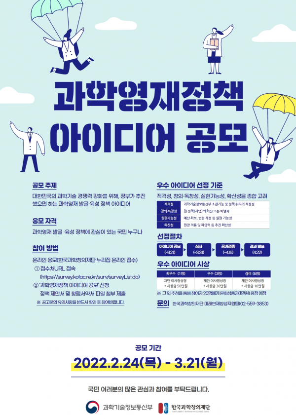 이번 공모전에 대한 보다 자세한 내용은 2.24.부터 과기정통부와 창의재단 누리집을 통해 확인할 수 있다.