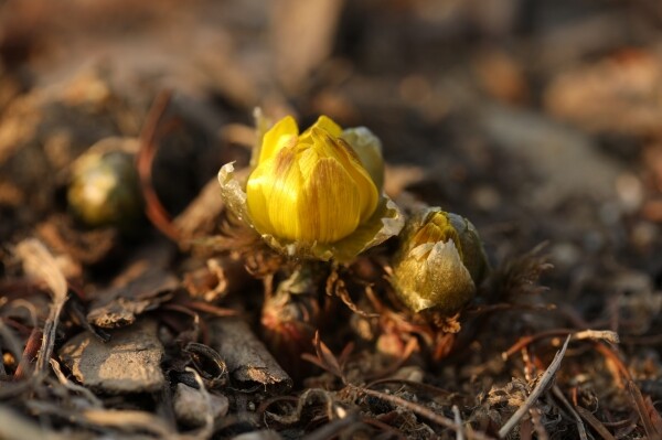 세복수초는 국립세종수목원의 추운 겨울을 견디며 이른 봄을 맞아 황금빛 봄소식을 전했다.