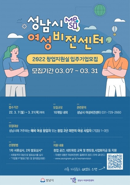 신청 대상은 공고일 기준 성남시에 사는 예비 여성 창업자, 창업 2년 미만의 여성 사업자이다.