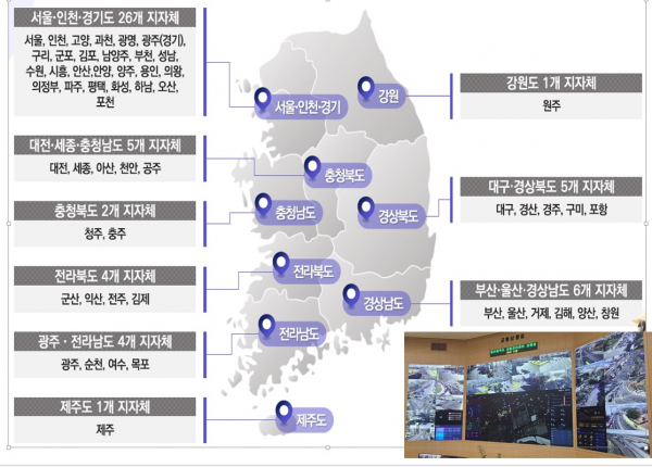 참고로 현재 총 54개 지자체에서 교통정보센터를 통해 지역 주민에게 실시간 교통상황, 돌발정보 등 첨단교통서비스를 제공하고 있으나 특광역시와 수도권에 편중되어 있어, 지방 중소도시까지 지능형교통체계 구축 확산이 필요한 상황이다.