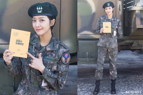 뿐만 아니라, 인증숏을 위해 군용 차량 앞에서 ‘군검사 도베르만’ 대본을 들고 손짓하고 있는 조보아의 모습은 차우인과는 달리 장난기 넘치는 얼굴로 반전 매력을 발산한다.