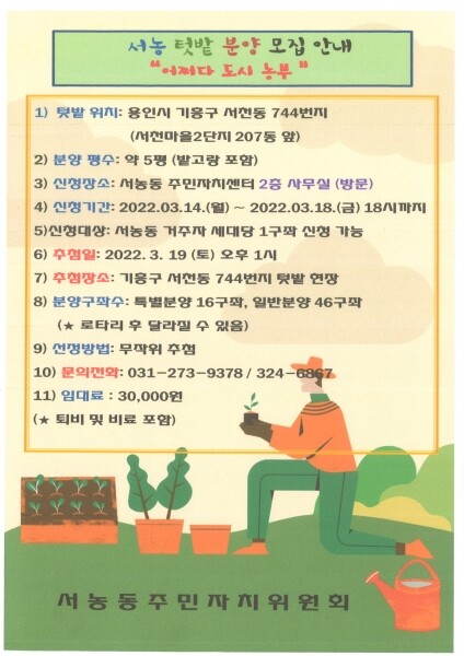 동 주민이라면 누구나 서농동 주민자치센터에서 신청할 수 있다.