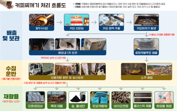 한편 환경부는 커피찌꺼기 순환자원 인정 개선방안의 일부를 담은 ‘순환자원 인정 절차 및 방법에 관한 고시’ 일부개정안을 3월 15일부터 20일간 행정예고할 계획이라고 전했다.