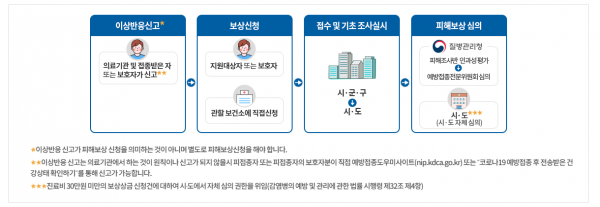 또한, 예방접종 피해보상이 접수되면 예방접종피해보상 전문위원회에서 백신과의 인과성 여부를 심의해 그 결과를 지차체를 통해 신청자에게 개별 통보한다고 밝혔다.