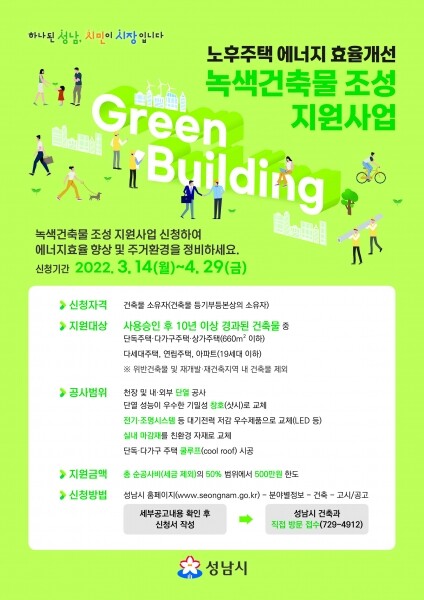 이 사업은 낡은 주택을 에너지 효율이 높은 건축물로 개선 공사하는 시민에게 최대 500만원을 지원한다.