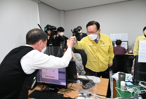 김 총리는 먼저 정혜정 창원보건소장으로부터 창원시 코로나19 대응 현황을 청취한 후, 중앙부처 파견공무원 근무현장을 찾았습니다.