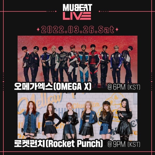 26일 오후 6시에 진행되는 3월 뮤빗라이브 1부에서는 최근 수록곡 ‘LIAR’로 감성적인 반전 매력을 보여주고 있는 오메가엑스가, 오후 9시에 진행되는 2부에서는 신곡 ‘CHIQUITA’로 컴백해 활발한 활동을 이어가고 있는 로켓펀치가 팬들과 만남을 갖는다.