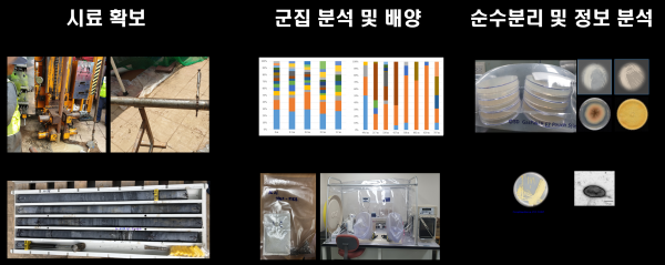 연구진은 경남 진주시와 대구광역시 소재의 퇴적암층 2곳을 750m까지 채굴해 빛과 물, 산소가 없는 가혹한 환경에 살고 있는 미생물을 탐색했다.