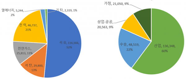 ‘19년 우리나라 수요부문 전체 에너지소비는 ’16년 215,419천toe 대비 연평균 1.7% 증가한 226,479천toe이다.