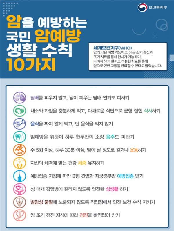 전국 12개 지역암센터에서도 제15회 암 예방의 날을 맞아 사회관계소통망을 통해 암 예방 수칙 실천, 경험담 공유 등 연계 캠페인을 진행할 계획이라고 전했다.