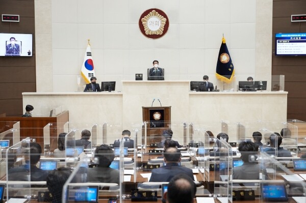 김기준 의장은 개회사를 통해 “현재 사회적 거리두기 완화 기조가 지속되면서 오미크론 확진자가 크게 늘었으나 점차 감소세로 전환되고 있고 지금은 모두가 힘든 시간을 보내고 있지만 평범한 일상으로 돌아갈 날이 멀지 않은 것 같다”며 “의료진과 공직자, 시민 여러분의 일상회복으로 가는 길에 조금만 더 힘을 내 주시기 바란다”고 말했다.