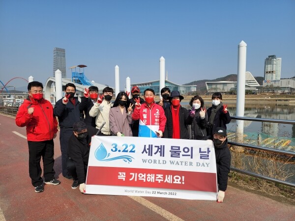 서 예비후보는 이날 지지들과 함께 서구 엑스포다리 일대의 갑천누리길을 걸으면서 쓰레기를 줍는 봉사활동을 진행했다.