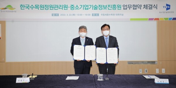 한국수목원정원관리원은 22일 중소기업기술정보진흥원과 산림바이오 및 정원분야 중소벤처기업 육성을 위한 업무협약을 체결했다고 밝혔다.