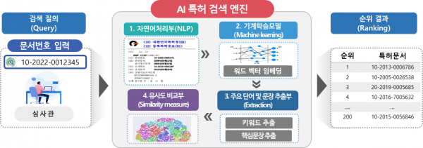 ? 시스템 개발을 위해 약 500만 건의 특허문헌을 학습데이터로 사용했고 아니라 인공지능이 도출한 핵심문장과 특허분류코드 등 특허문헌 고유의 정보를 활용함으로써 정확도를 크게 높였다.