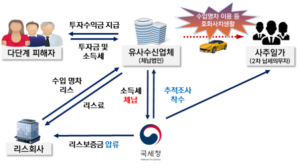 [수입 명차 리스] 세계 3대 명차로 유명한 고가의 승용차를 리스·이용하는 유사수신업체, 부동산 시행사 등 체납자 [재산 편법 이전] 강제징수를 회피할 목적으로 배우자 및 자녀 등에게 재산을 편법 이전한 체납자 [호화생활 영위] 재산·사업내역 및 생활실태 등 종합분석 결과 호화생활을 영위하거나 타인명의 위장사업 등 고의적 체납자체납자 은닉재산 추적에 노력한 결과 2021년에 2조 5,564억원의 체납세금을 징수·확보했다.