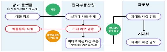 ‘실거래정보 기반 모니터링’은 2020년 8월부터 운영 중인 ‘부동산광고시장 감시센터’를 통해 유선 등으로 조사하던 기존의 모니터링 방식을 보완하기 위해 올해 1월 도입됐으며 한국부동산원에서 보유하고 있는 부동산 실거래정보와 정보통신서비스 제공자의 매물정보를 비교해 거래 완료 여부를 검증하는 방식으로 진행했다.