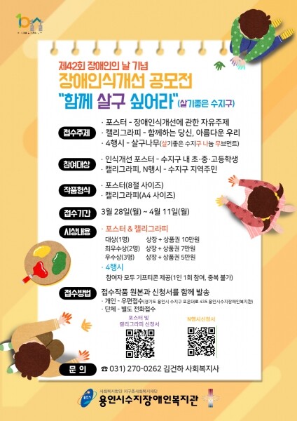 본 공모전은 지역주민 누구나 장애인식개선에 대한 자유로운 주제로 포스터, 캘리그라피, 4행시로 참여할 수 있다.