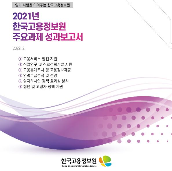 성과보고서는 지난 한 해 고용정보원이 고용위기에 대응하고 일자리 문제를 해결하기 위해 수행한 연구 분야를 고용정보 수집 및 노동시장 분석, 고용정책수립 지원, 경력개발 및 고용서비스 지원으로 분류한 후, 총 7개의 주제로 담았다.