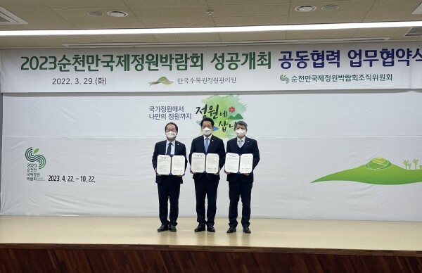 한국수목원정원관리원은 29일 2023순천만국제정원 박람회조직위와 업무협약을 체결했다고 밝혔다.