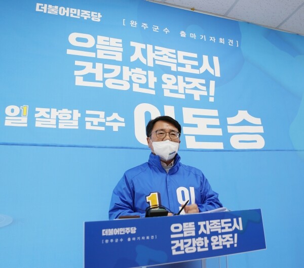 이돈승 예비후보는 30일 보도자료를 통해 “지역발전에 절대적인 국가예산 확보를 통해 완주군 예산이 임기 내 9000억원을 돌파하는 등 1조원 시대의 기반을 만들어가겠다”고 밝혔다.