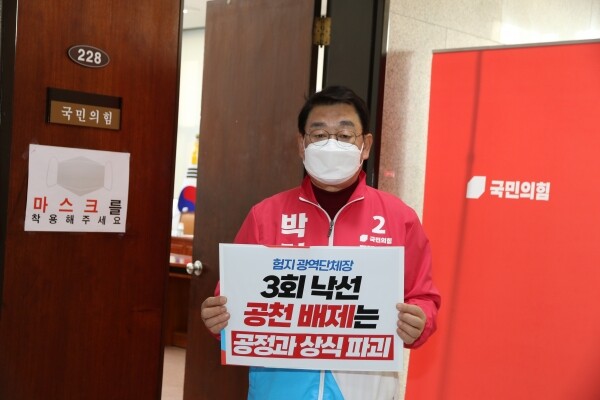 박 예비후보는 이날 “이번 공관위의 3번 이상 낙선자 공천 배제 방침은 선거 역사상 전례가 없는 사안”이라며 “험지에서 당을 지켜온 당원들에게 위헌의 소지가 충분한 이상한 공천룰을 들이대는 것은 공정과 상식을 파괴하는 행위”고 주장했다.