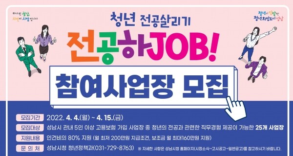 이 사업에 참여하려는 성남지역 기업은 기한 내 신청서 사업자등록증 사본 등의 서류를 성남시청 청년정책과 담당자 이메일로 보내면 된다.