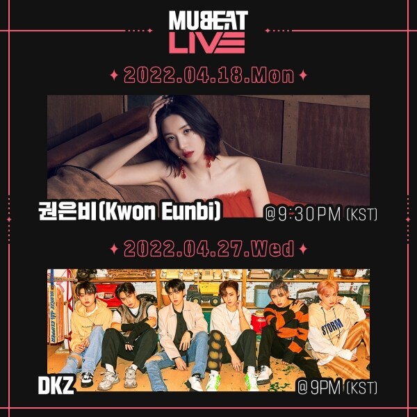 완성형 솔로로 돌아온 ‘권은비’와 역주행 돌풍을 일으키고 있는 그룹 ‘DKZ’가 글로벌 케이팝 플랫폼 뮤빗의 뮤빗라이브에 출연한다.