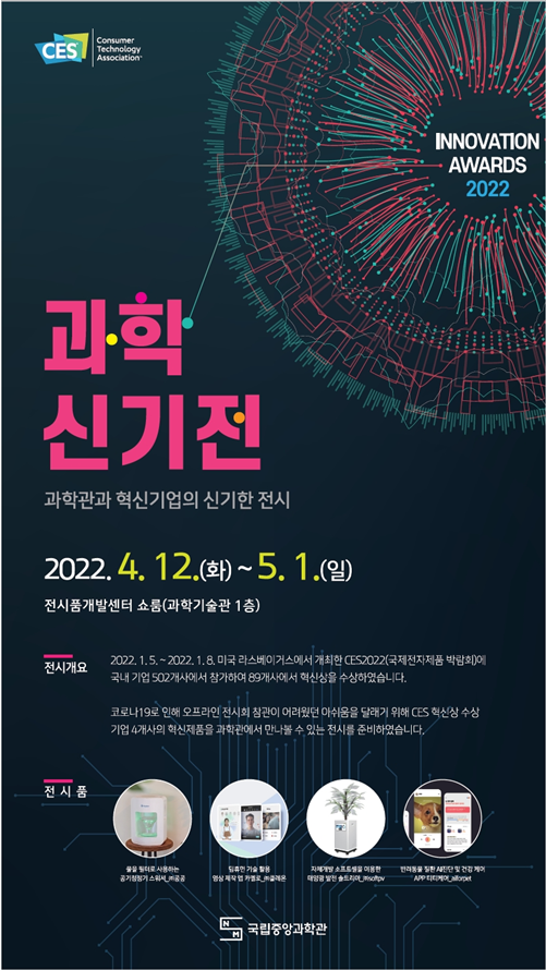 이번에 열리는 과학신기전은 국립중앙과학관과 혁신기업이 공동으로 개최하는 특별전으로서 관람객들이 최신 첨단기술기반 혁신제품인 클론과 클링클레온), 스워셔공공), 티티케어에이아이포펫), 솔트리아소프트피브이) 등을 만나볼 수 있도록 전시했다.