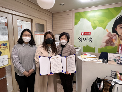 이번 업무협약을 통해 윤선생영어숲분당탑학원은 성남시청소년상담복지센터에서 연계된 위기청소년을 대상 영어 등 교육지원과 학원비 감면혜택·학업 관련 지원과 위기청소년 발굴 및 지원을 위한 자발적인 민간 조직인 1388청소년지원단 소속으로서 활동을 강화할 예정이다.