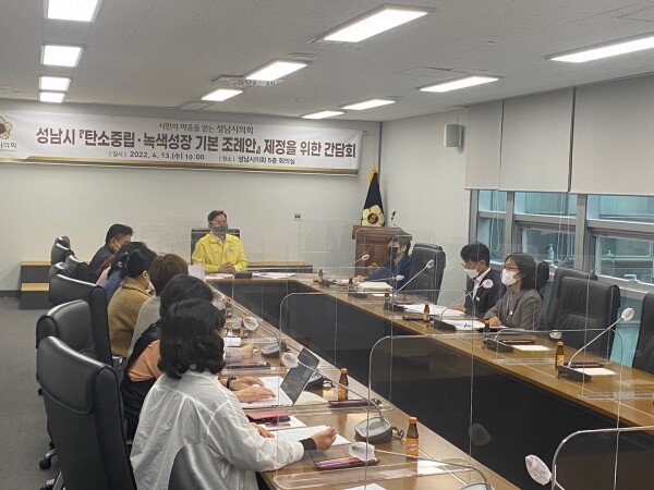 이번 간담회는 “기후위기 대응을 위한 탄소중립·녹색성장 기본법’ 및 같은 법 시행령에서 위임된 사항과 그 시행에 필요한 사항을 규정함”을 목적으로 지난 3월 30일 성남시의회 공고 제 2022 ? 12호로 입법예고된 탄소중립.녹색성장 조례를 제정하고자 하는 것으로 주목된다.
