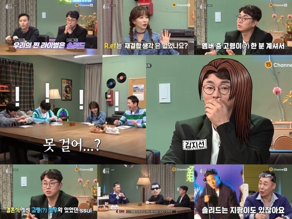 박선영이 최근 재결합하고 활동을 한 솔리드처럼 R.ef도 재결합 생각이 있는지 묻자, 성대현은 “멤버 중 한 분이 워낙 고령이시라”며 맏형 디스를 펼쳐 웃음을 유발했다.