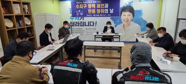 다음 ‘정책제언과 민원청취의 날’은 6월 마지막주 토요일로 예정되어 있으며 정춘숙 의원 지역사무실로 연락해 사전 신청하면 수지 주민 누구나 참여가 가능하다.