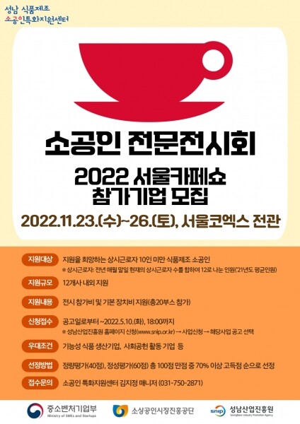지원대상은 성남시 소재한 소공인으로 식료품 제조업을 영위하는 기업이다.