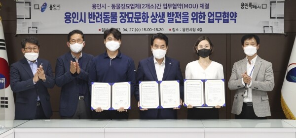 협약에 따라 이들 동물장묘업체 2곳은 앞으로 2년간 용인시민에게 화장비와 봉안비 10% 할인 혜택을 제공한다.