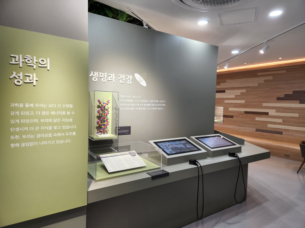 성과 공간은 한국항공우주연구원, 극지연구소 등 8개 기관에서 제공한 로켓 누리호 발사체, 자연어 인식 인공지능 체험물, 얼음 속 화학 현상 등을 관람하고 체험해볼 수 있도록 채워졌다.