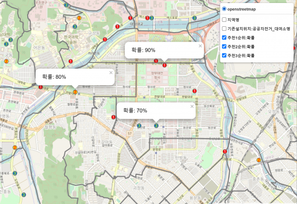 대전시와 용인시는 기존 공공자전거 대여소 260개소 등 시설물 관련 위치데이터를 제공했다.