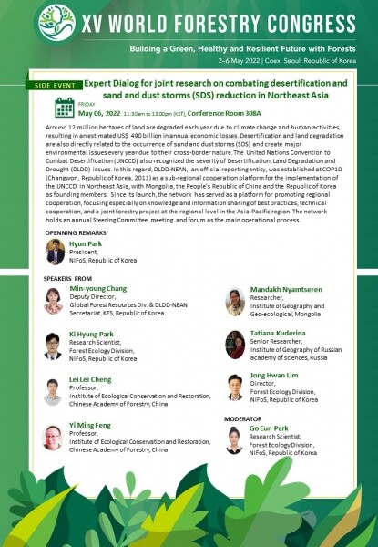 이번 회의는 ‘동북아시아 사막화 방지 네트워크’ 가입국인 한국, 중국, 몽골 등 동북아시아 사막화 방지 전문가가 모여 각국의 사막화 방지와 황사 저감 정책 및 연구 현황을 공유하고 공동연구를 도모하기 위한 자리이다.