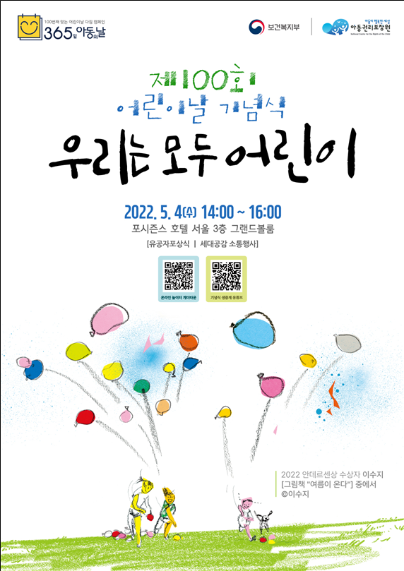 코로나19로 인해, 지난 2년간 어린이날 기념식은 유공자와 그 가족을 초청하는 작은 기념식 형태로 운영했으나, 올해에는 주요 아동단체 대표들을 초청해, 약 100여명이 참석한 규모로 개최했고 온라인 가상현실 플랫폼 ’온라인놀이터‘를 통해 생중계했다.