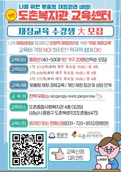 도촌종합사회복지관에선 40~50대 중장년 총 60명을 대상으로 4회 과정의 재정교육을 3기에 걸쳐 운영한다.