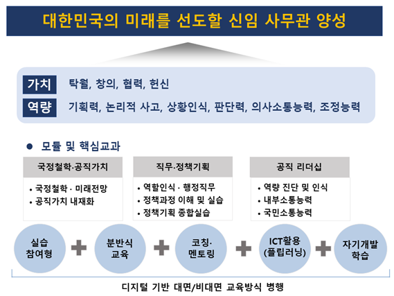 교육과정은 국민에 대한 봉사자로 공직 가치를 확립하고 디지털 역량과 정책 기획, 지도력을 키울 수 있도록 중점을 뒀다.