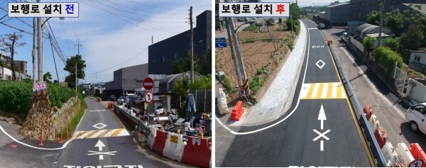 이 도로는 국도에서 마을로 진입하는 도로로 차량 통행이 잦은데도 불구하고 보도가 설치돼 있지 않아 주민들이 갓길을 보행로로 이용하는 등 안전사고 위험이 높았던 곳이다.