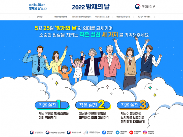 행정안전부는 올해로 29회를 맞이하는 방재의 날을 기념하고 국민에게 재해 예방의 중요성을 상기시키고자 누리집을 개설했다.
