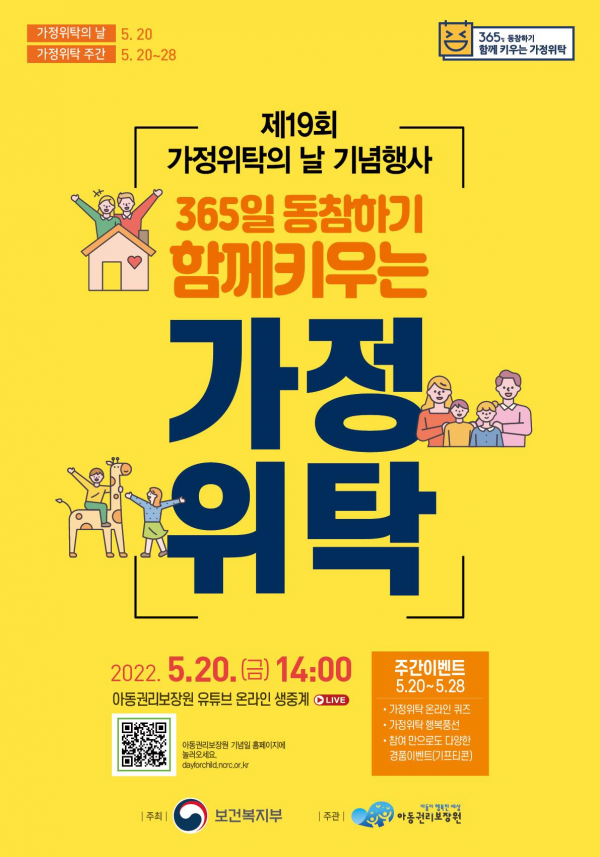 제19회 가정위탁의 날 기념식은 아동권리보장원 유튜브 채널을 통해 가수 솔비 사회로 베이비뉴스스튜디오에서 생중계로 진행된다.