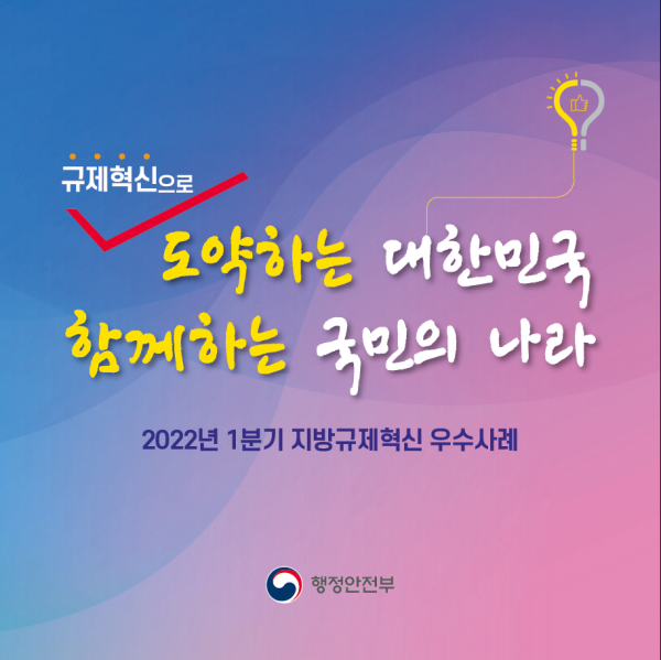 김장회 행정안전부 지방재정경제실장은 “규제혁신은 지역경제를 활성화하고 생활을 더욱 편리하게 하는 또다른 정책이다”며 “앞으로도 지방자치단체와 행정안전부는 지역주민, 기업, 소상공인 등 사회 곳곳의 현장·수요자 중심의 규제애로 해소 사례 발굴·확산을 위해 적극 노력해 나가겠다”고 밝혔다.