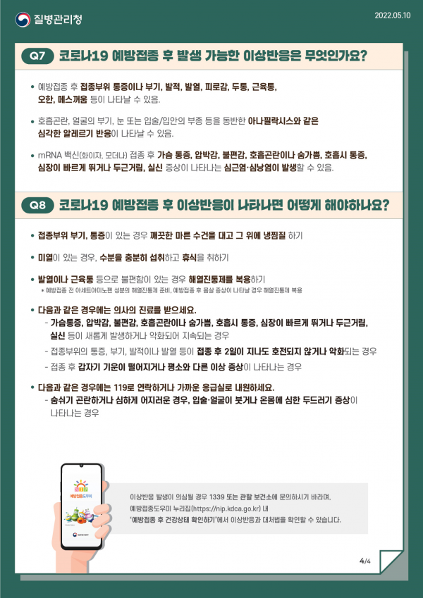 코로나19 예방접종 대응 추진단은 5월 25일 0시 기준 1차접종자 400명, 2차접종자 658명, 3차접종자 4,110명, 4차접종자 44,868명으로 누적 1차접종자수는 45,050,105명, 2차접종자수는 44,571,263명, 3차접종자수는 33,272,841명, 4차접종자수는 3,898,378명이라고 밝혔다.