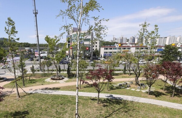 공원이 위치한 등기소 앞 사거리는 밀집한 아파트 단지와 관공서 학교 등으로 유동인구가 많아 동의 대표적 관문으로 불리는 곳이다.