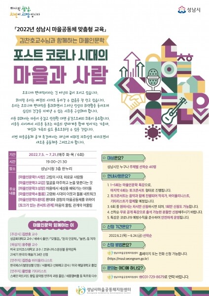 7월 5일부터 21일까지 매주 화.목요일 오후 7시에서 9시 30분까지 시청 한누리에서 대면으로 진행하며 대상은 전 시민이다.