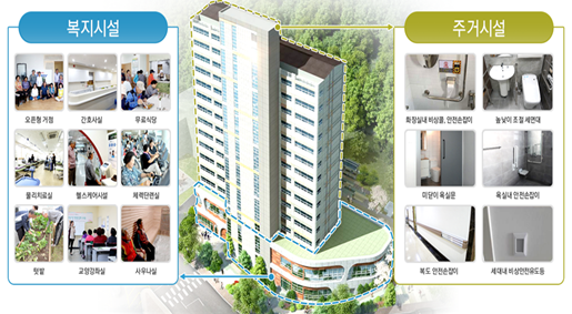 고령자복지주택은 고령자 주거안정을 위해 무장애설계가 적용된 임대주택과 사회복지시설을 함께 조성하는 사업으로 새 정부 국정과제에 포함해 적극 추진하고 있다.