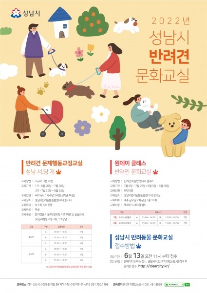 반려견 문제행동교정, 간식·비누만들기 등 2개 강좌가 개설돼 총 76회의 수업이 열린다.