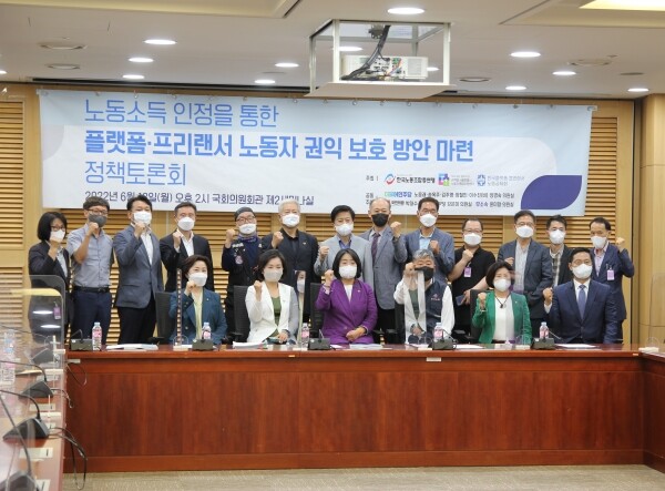 이번 토론회는 ‘노동자인 듯 노동자 아닌’ 플랫폼·프리랜서 노동자와 관련해, 이들의 즉각적인 노동자성 인정이 어렵다면 정책 및 제도 개선을 통한 보호방안을 논의해 보자는 취지에서 마련됐다.